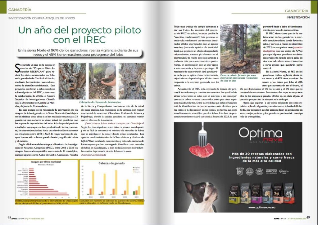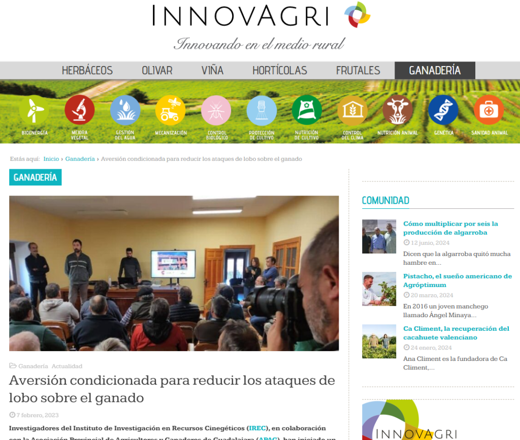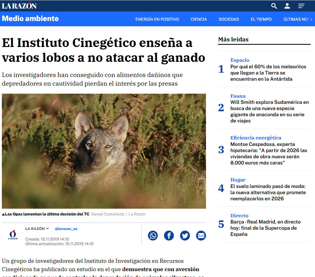 OviEspaña: https://www.oviespana.com/Articulos/273403-Investigan-como-provocar-en-el-lobo-aversion-al-ganado-ovino-para-evitar-sus-ataques.html