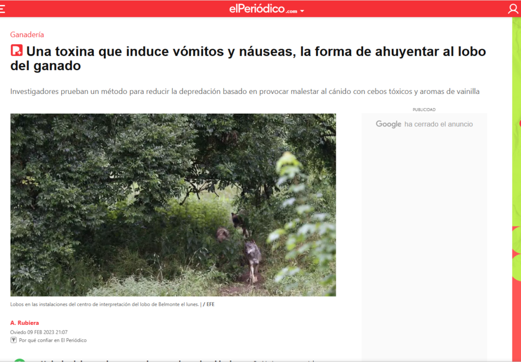 El Periódico : https://www.epe.es/es/espana/20230209/toxina-induce-vomitos-nauseas-forma-ahuyentar-lobo-ganado-82717311